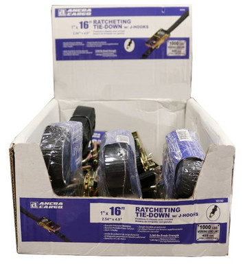 1” x 16’ Ratchet Tie-Down w/J-hooks & D-Rings, Bulk Bin